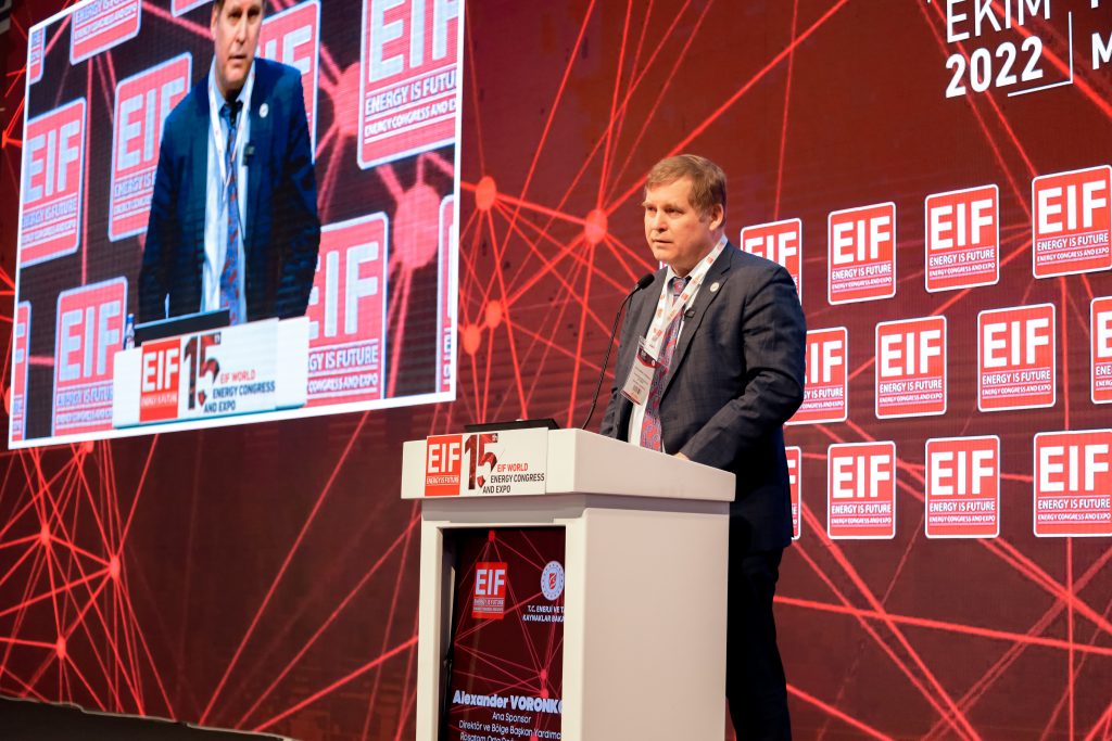 Alexander Voronkov konuşmasında, kongreyi düzenleyenlere ve Türkiye Cumhuriyeti Enerji ve Tabii Kaynaklar Bakanlığı’na enerji sektörünün önde gelen temsilcileri arasında profesyonel bir diyalog platformu sağladıkları için teşekkür etti. Voronkov şunları söyledi: “Kongre, Sürdürülebilir Kalkınma Hedeflerini destekleme sloganıyla düzenleniyor. Çalkantılı bir dünya ekonomisi ve küresel tüketim artışında, enerji sistemlerini dengeleyebilecek, piyasa dalgalanmalarını en aza indirebilecek ve karbon azaltma taahhütlerini yerine getirebilecek enerji kaynaklarına olan talep her zamankinden daha önemli. Nükleer enerji, sürdürülebilir ekonomik ve endüstriyel kalkınma için güvenilir bir dayanak, bir katalizör görevi üstlenerek bu talebe cevap veriyor.”