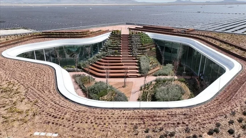 Konya’nın Karapınar ilçesinde bulunan santralin işletilmesi amacıyla bir çok teknik altyapı ve dijital araçlarla donatılan bina, fütürist tasarımıyla dikkati çekiyor.