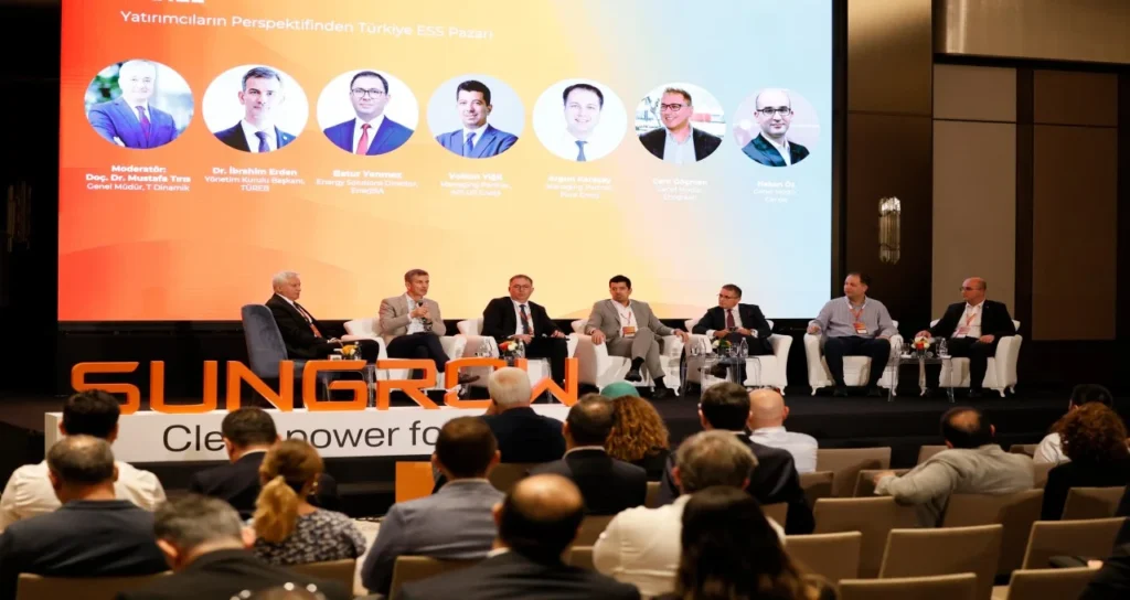 Son bölümde T-Dinamik Genel Müdürü Doç. Dr. Mustafa Tırıs moderatörlüğünde düzenlenen Yatırımcı Perspektifinden Türkiye ESS Pazarı panelinde, TÜREB Yönetim Kurulu Başkanı Dr. İbrahim Erden, EnerjiSA Enerji Çözümleri Genel Müdürü Batur Yenmez, APLUS Enerji Yönetici Ortağı Volkan Yiğit, Pure Enerji Yönetici Ortağı Argun Karaçay, Ecogreen Genel Müdürü Cem Göçmen ve Genpa Enerji Genel Müdürü Hakan Öz gibi sektör liderleri, Türkiye’nin enerji depolama yatırımlarındaki fırsatları, zorlukları ve uzun vadeli stratejileri değerlendirdi.